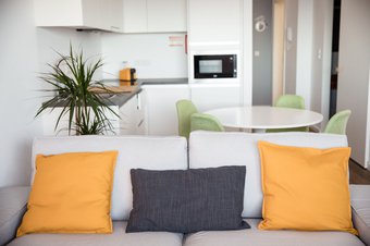 2 double bed rooms, 1 bathroom, a fully equipped kitchenette and a living room with a panoramic view of the ocean.